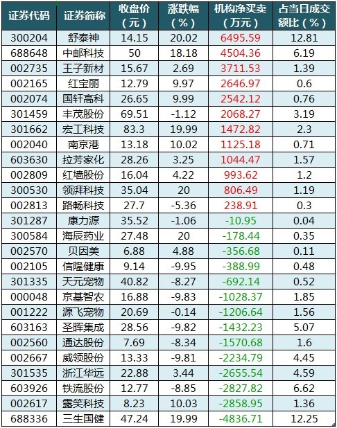 龙虎榜机构净买入12股 舒泰神(300204)居首