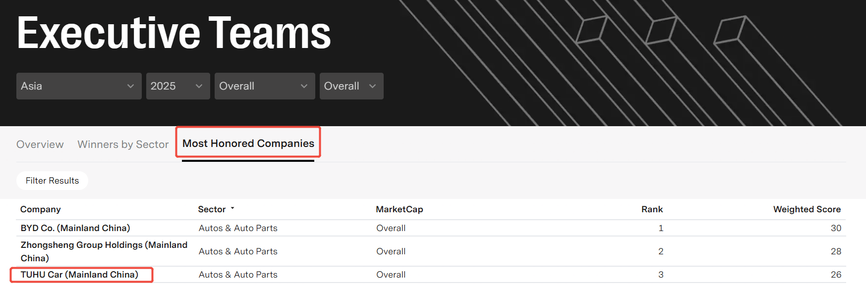 途虎养车荣膺Extel“2025年亚洲最佳管理团队”评选最受尊崇公司