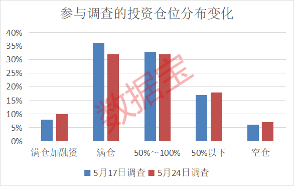 对于接下来潜力板块和方向选择,医药、并购重组两大领域获投资者看好比例持续上升,分别从5月10日的4%、2%提升至5月17日的7%、4%,进一步提升至最新调查的14%、9%。