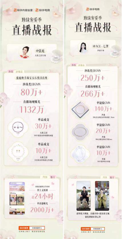 长久以来,珍珠作为一种兼具深厚文化底蕴与温润典雅气质的珠宝,深受消费者的关注与喜爱,近年来更是在直播电商推动下不断扩大市场份额。GMV增长创新高,月环比同比增长超过100.1%,单场珍珠GMV超过10万爆品数月环比增长超过105%,话题总曝光量超过6.5亿。