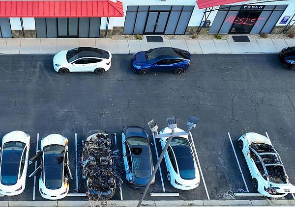 3月,拉斯维加斯,特斯拉服务中心内车辆被焚烧 (图片来源:央视新闻)