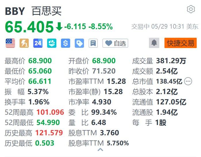 美股异动丨百思买跌超8.5% 因关税不确定性下调全年业绩指引