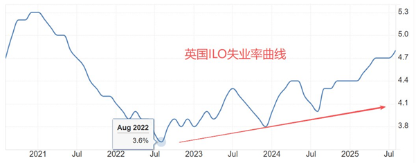 本周二15:00,英国国家统计局将公布三季度ILO失业率,前值为4.8%,预期值4.9%,预期微增。ILO失业率是英国统计局按照国际劳工组织的定义的失业率标准进行统计的数据。历史数据看,2022年8月份至今,ILO失业率一直处于上升状态,数值从最低点3.6%升至8月份的4.8%。在英国宏观经济疲软局面改善之前,ILO失业率继续走高是大概率事件。虽然失业率仍在走高,但英国央行已经两次利率决议暂停降息,因为英国的通胀率一直居高不下。5%是衡量劳动力市场健康与否的标准,一旦英国的失业率突破5%,英国央行可能迫于压力重启降息。