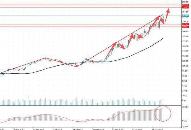 技术面:美光科技日线级别逐步上涨,并在48日多空分界线上方运行。此外,MACD双线和量能柱在零轴上方扩张。美光科技的HBM路线图持积极态度,该路线图包括专为AI设计的HBM4e、定制HBM解决方案和内存计算能力。