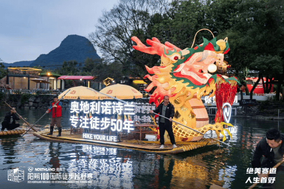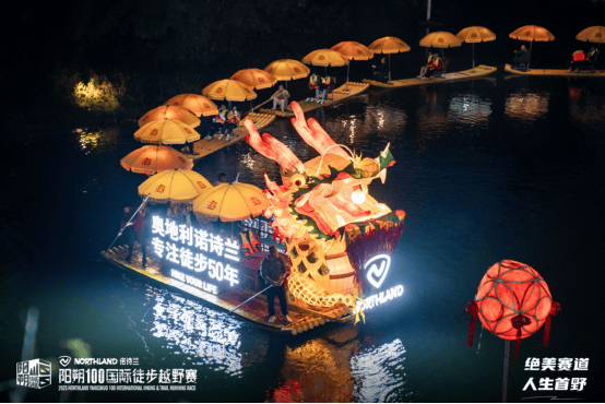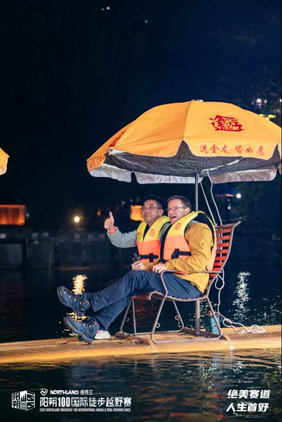11月8日晚,遇龙河上千米金龙游动。由75张竹筏串联的“金龙巡游”,让光影与山水交织,成为一场独属于东方的户外盛宴。奥地利驻华大使馆公使吴浩然、奥地利驻华大使馆商务参赞 Mr. Franz Rö?,奥地利旅游局负责人贾珊与NORTHLAND诺诗兰选手们,共同登上竹筏畅游遇龙河,共庆赛事并对赛事组织与品牌理念给予高度认可。
