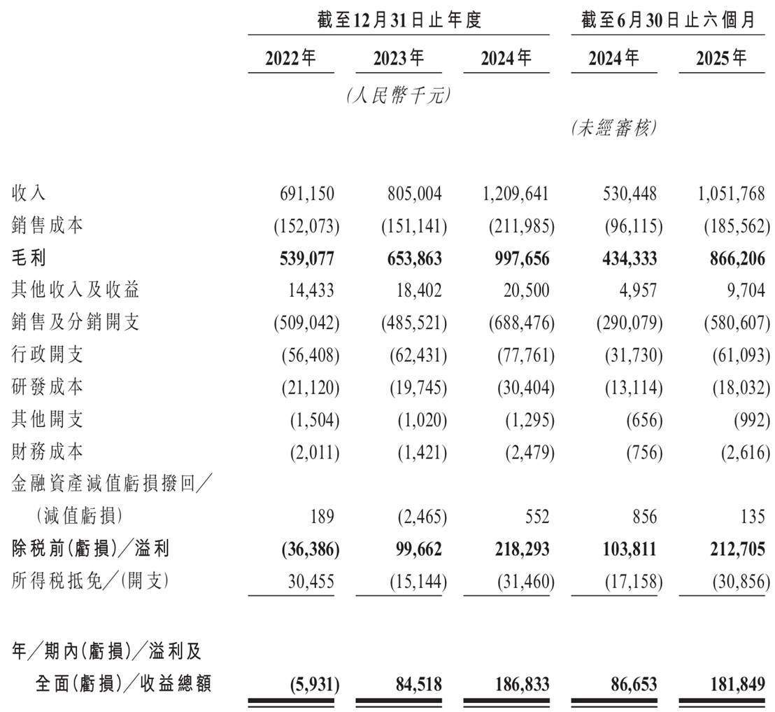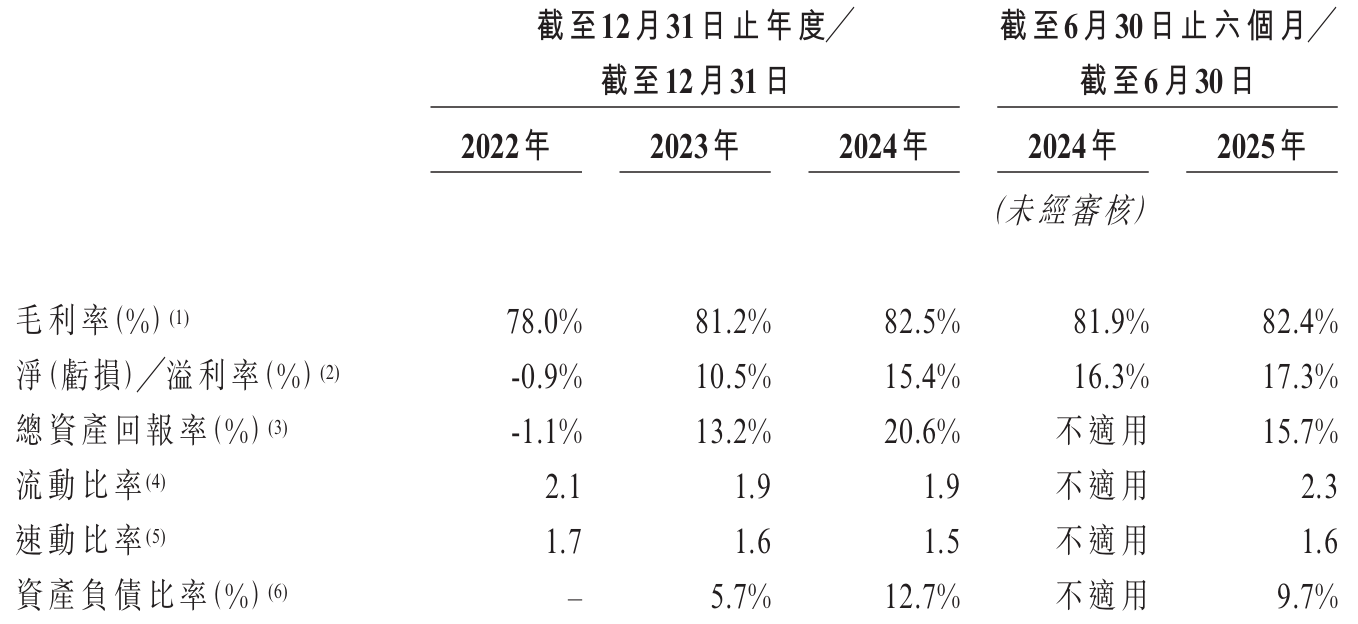 此外,公司溢利及全面收益总额自2023年扭亏后连续两年以三位数增长。2024年溢利为1.87亿元,相较上年同比增加121.06%;2025上半年溢利为1.82亿元,同比增长109.86%。