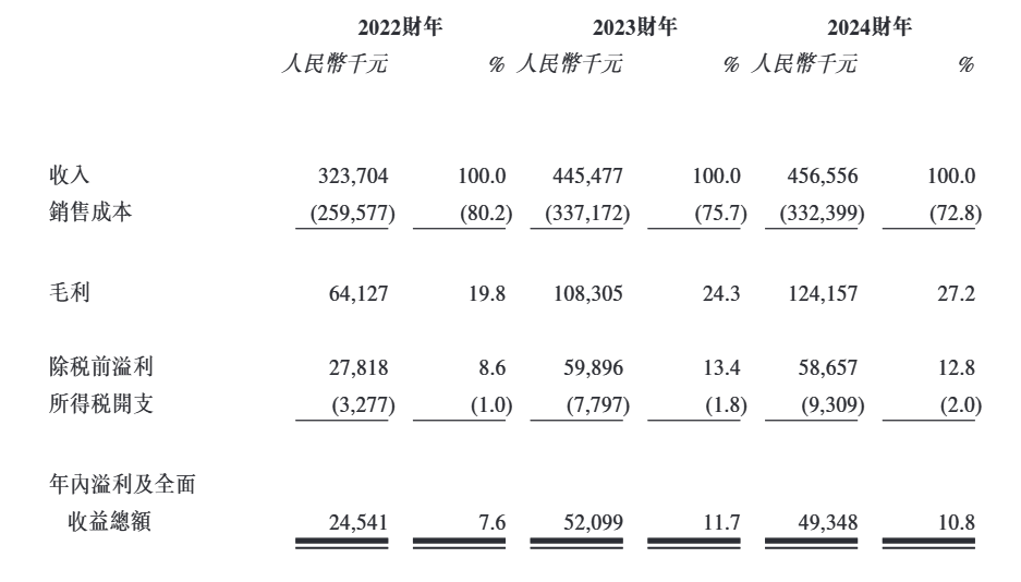 2022-2024年(下称“报告期”),西普尼分别实现营业收入3.24亿元、4.45亿元及4.57亿元,录得净利润2454.1万元、5209.9万元及4934.8万元。2024年西普尼的营收虽继续增长,但同比增速仅为2.49%,而净利润减少了5.28%,呈现“增收不增利”。