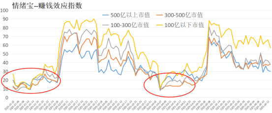 根据情绪宝的时间周期,自5月8日情绪触顶并开始降温以来,赚钱效应指数已经持续降温26天,还有大概10个交易日,情绪底部可能会到来。