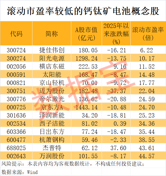 捷佳伟创滚动市盈率6.22倍,排在最低位置。公司自主研发用于钙钛矿太阳能电池生产的关键设备――大规格钙钛矿涂布设备已正式交付客户,将并入其研发中试线正式生产。