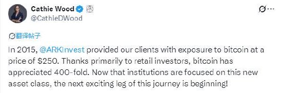 “木头姐”再次唱多比特币:下一段激动人心的旅程即将开始