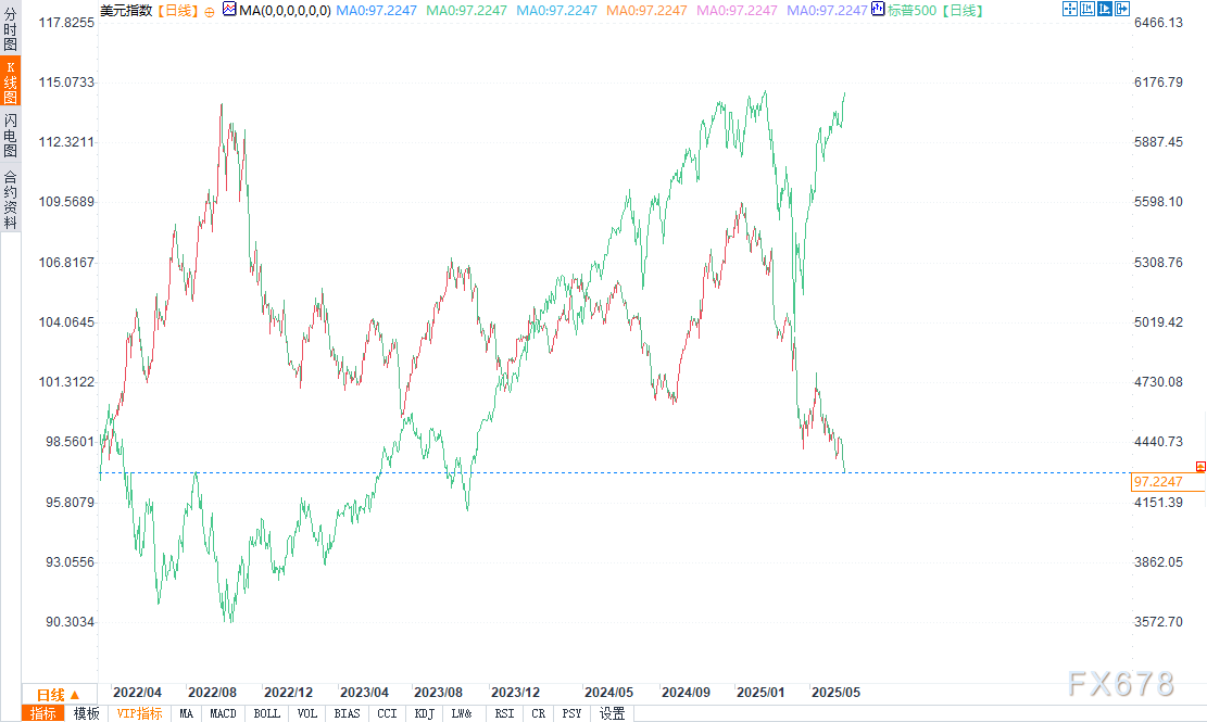 汇通财经APP讯――中东冲突曾一度重塑了美元的避险资产地位,但这也成为了其走弱的诱因。随着全球风险偏好升温,美元与美股指数的负相关性导致美元指数触及三年低点。投资者将以色列与伊朗之间“十二日战争”的停火视为冲突终结,正纷纷买入股票。