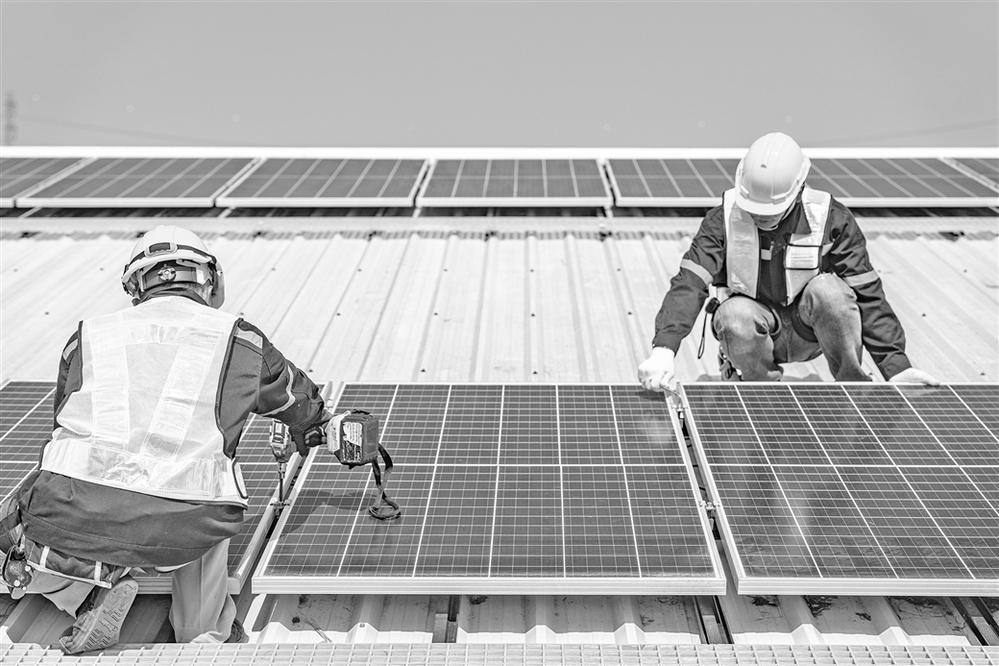 图为工人正在安装屋顶分布式光伏。 图虫创意/供图