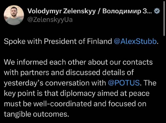泽连斯基称:“我们互相通报了与合作伙伴的接触情况,并讨论了昨天与美国总统特朗普对话的细节。”