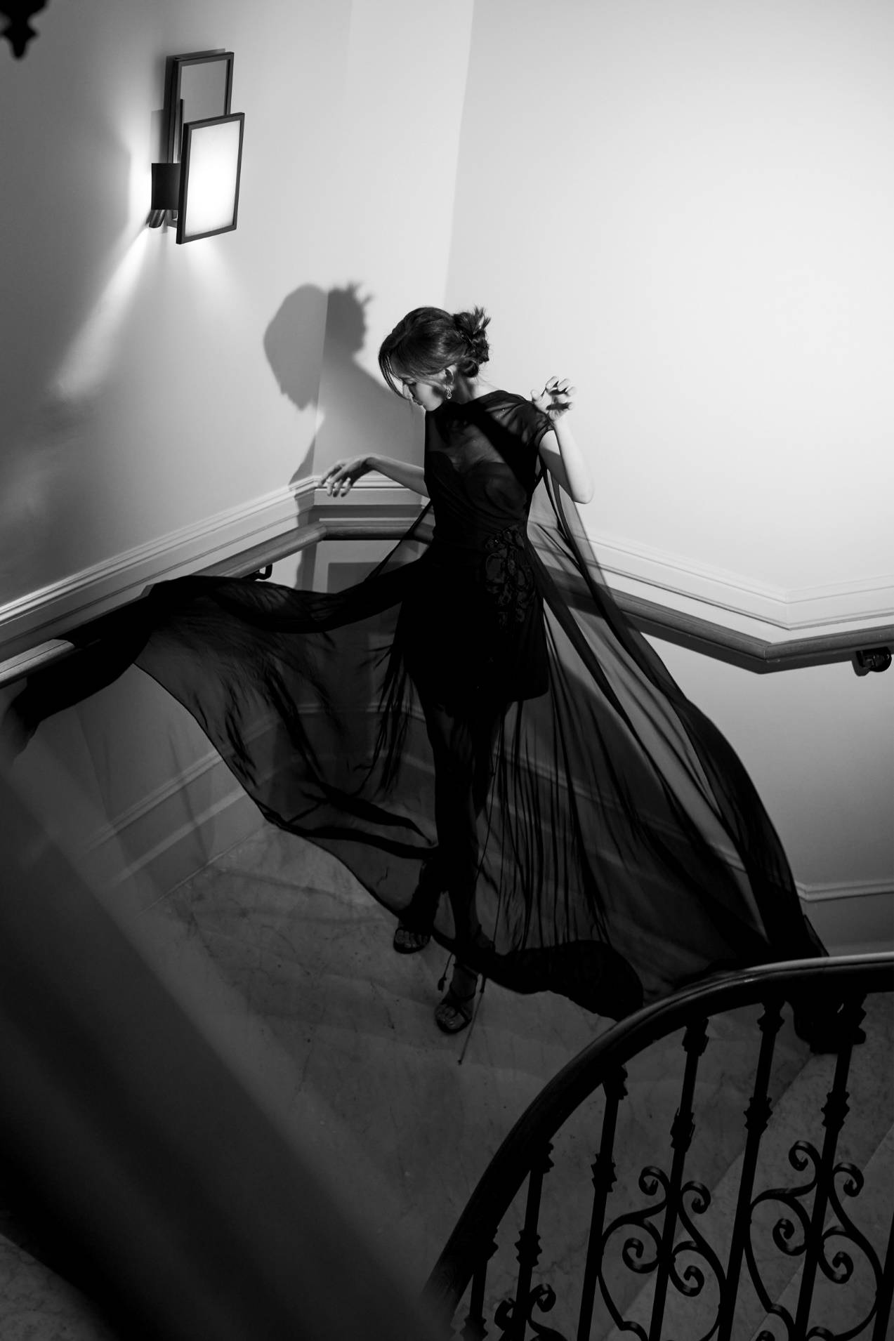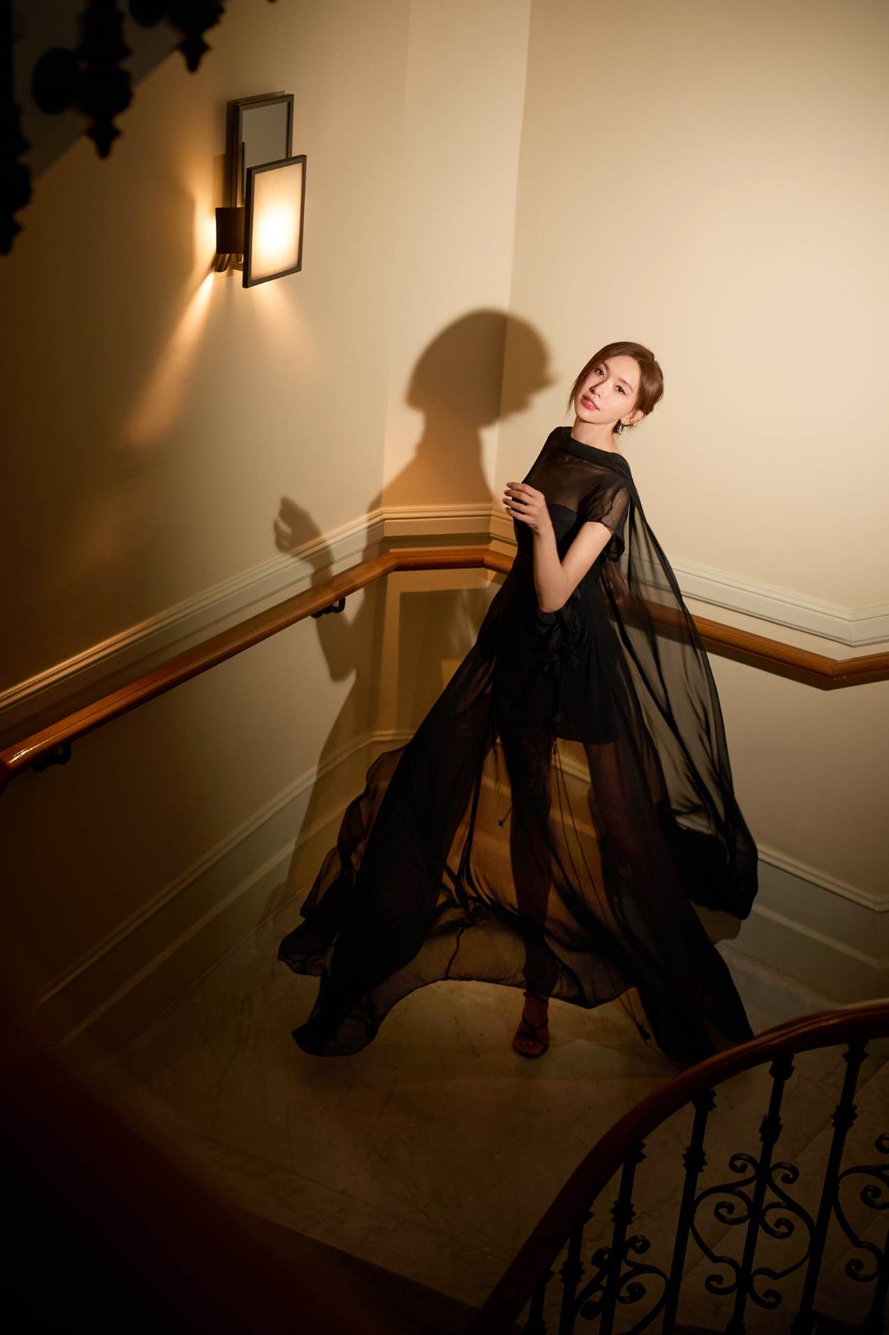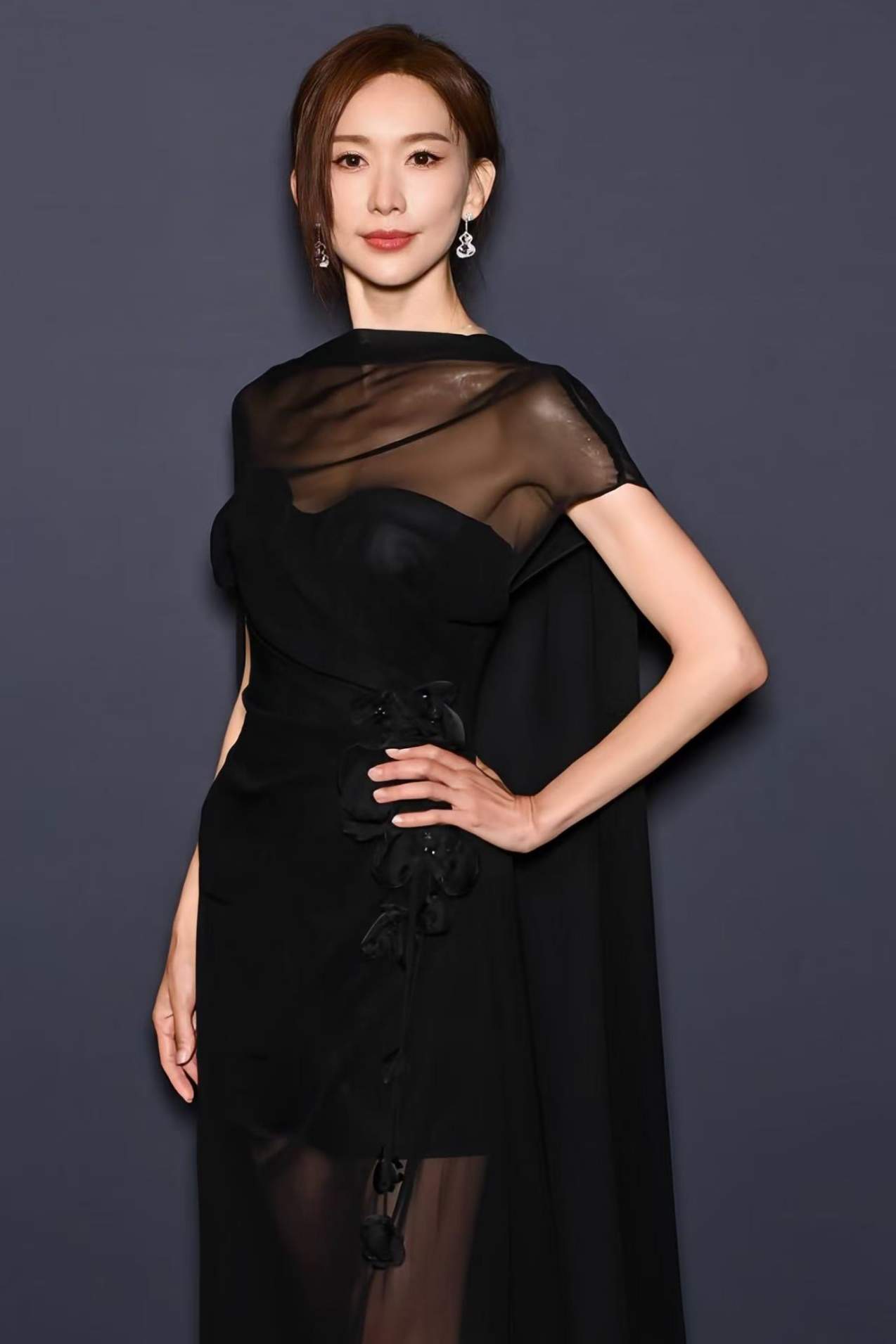 林志玲的优雅如经典斗篷焕发奢雅,蝴蝶兰在烛光下熠熠流转;光影旖旎,朦胧的黑纱晕染着一层光韵,La Koradior拉珂蒂高定礼服与林志玲辉映星光,与浪漫氛围融为一体,宛如电影镜头下神圣的女神。