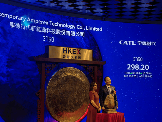 A股万亿市值新能源龙头宁德时代(300750.SZ,3750.HK)正式在港交所挂牌上市。