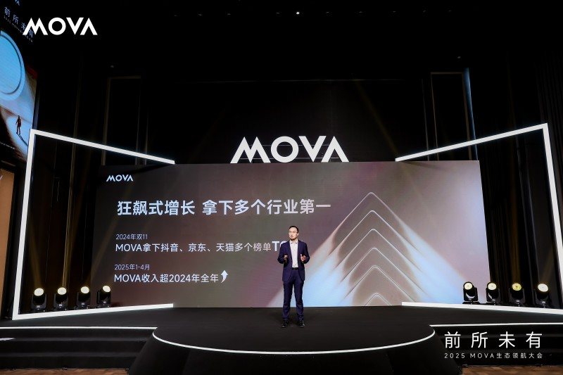 MOVA的增长速度也成为一大亮点。MOVA在现场披露,2025年1-4月,MOVA收入已经超2024年全年。另有行业数据显示,今年1-4月,MOVA智能清洁产品中国区线上零售额同比增速高达1102.4%,零售量同比增长高达1182.7%。