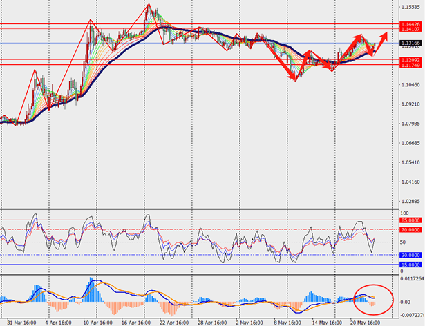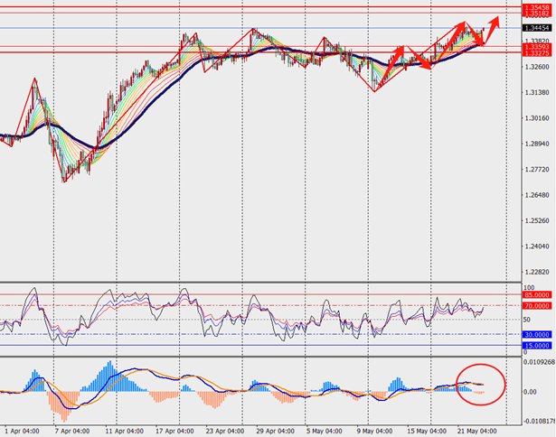 技术面: 欧元兑美元H4级别震荡反弹,并在48日多空分界线上方运行。此外,MACD双线与量能柱在零轴上方收敛。市场焦点逐渐转向7月政策走向,由于欧元区经济未如担忧中般疲弱,部分政策制定者倾向于按兵不动,以便评估更长期的通胀趋势。
