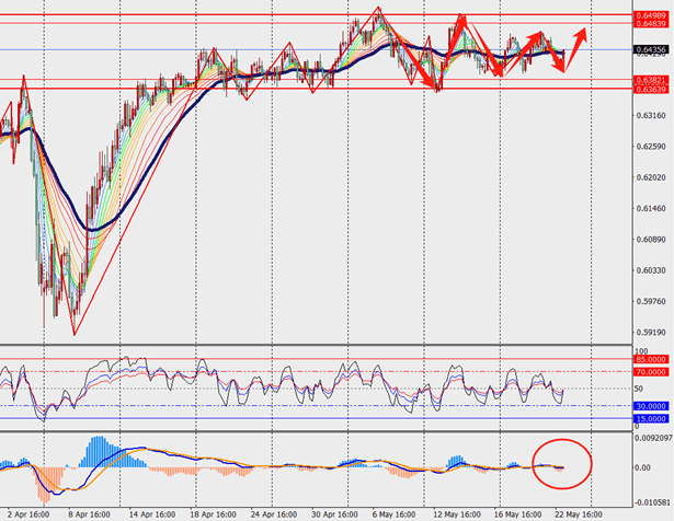 技术面:澳元兑美元H4级别小幅反弹,并在48日多空分界线附近运行。此外,MACD双线和量能柱在零轴附近收敛。市场已开始消化澳洲联储未来12个月内降息75个基点的预期,现金利率期货显示利率将降至3.10%的低位。