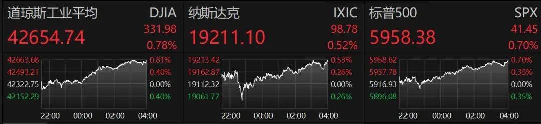 隔夜美股盘中拉升,全线收涨。中概股多数上涨。