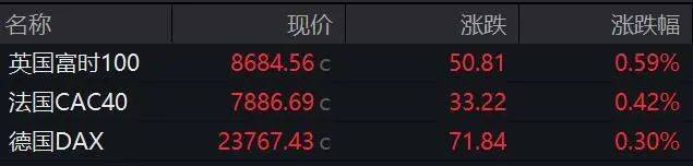 欧洲三大股指收盘全线上涨。