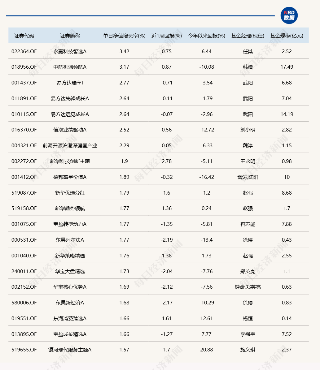 点评:今天盘中,CPO概念表现活跃,龙头股新易盛、天孚通信等中幅上涨。今日涨幅榜第2~5名的产品,截至一季度末都有相关持仓,下图为排在第二的中航机遇领航。