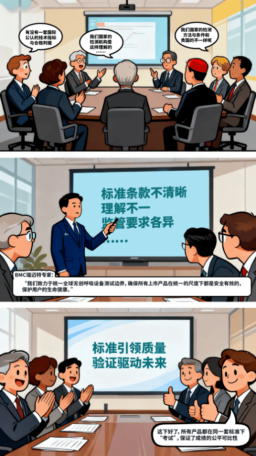 2023年5月,一项家用呼吸机设备相关的国际标准,未明确动态压力采样的起始点与周期,导致各国检测结果无法全球比对。BMC瑞迈特专家与澳大利亚专家组成工作组,定义了采样起始点,为全球检测确立统一标准。统一的采样起始点就如同制定了统一答题卡与评分规则,让所有产品能在同一标准下接受检验,保障检测结果公平可比。