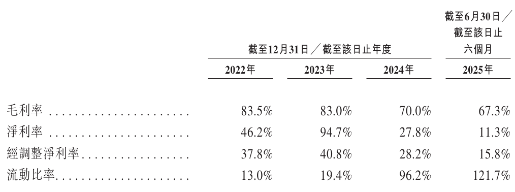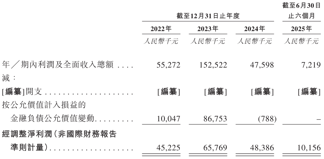 不过,2023年公司利润的大幅增长主要由于当期按公允价值计入损益的金融负债公允价值变动为8675.3万元,若剔除该因素影响,2022年至2025上半年公司经调整净利润分别为0.45亿元、0.66亿元、0.48亿元和0.1亿元。