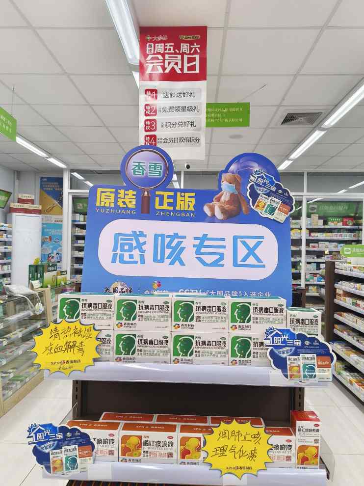 在药店显眼的位置上,都摆放了橘红痰咳液、抗病毒口服液、维C、西瓜霜等众多具有清热解毒、缓解咽喉不适等功效的中成药。工作人员表示,因感冒咳嗽类药品需求激增,药店专门调整了货架,留更多货架空间放置咽喉及感冒用药。让顾客更方便选购。