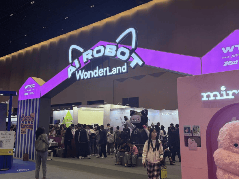 不过值得关注的是,本次WTCC展会现场最引人驻足的是各种毛绒绒的萌趣玩偶,AI陪伴机器人展台成为近几日现场“最靓的崽”。本次AI萌宠陪伴机器人Ropet萌友智能、AI陪伴潮玩珞博智能、陪伴机器人Mirumi、开源桌面机器人Reachy Mini等企业的展台都引来不少观众。