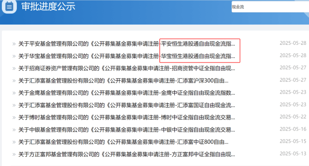 根据证监会官网,平安基金和华宝基金于5月28日申报了跟踪恒生港股通自由现金流指数的基金。从券商中国记者梳理来看,这是继沪深300自由现金流等指数之后,又一类新型自由现金流品种。