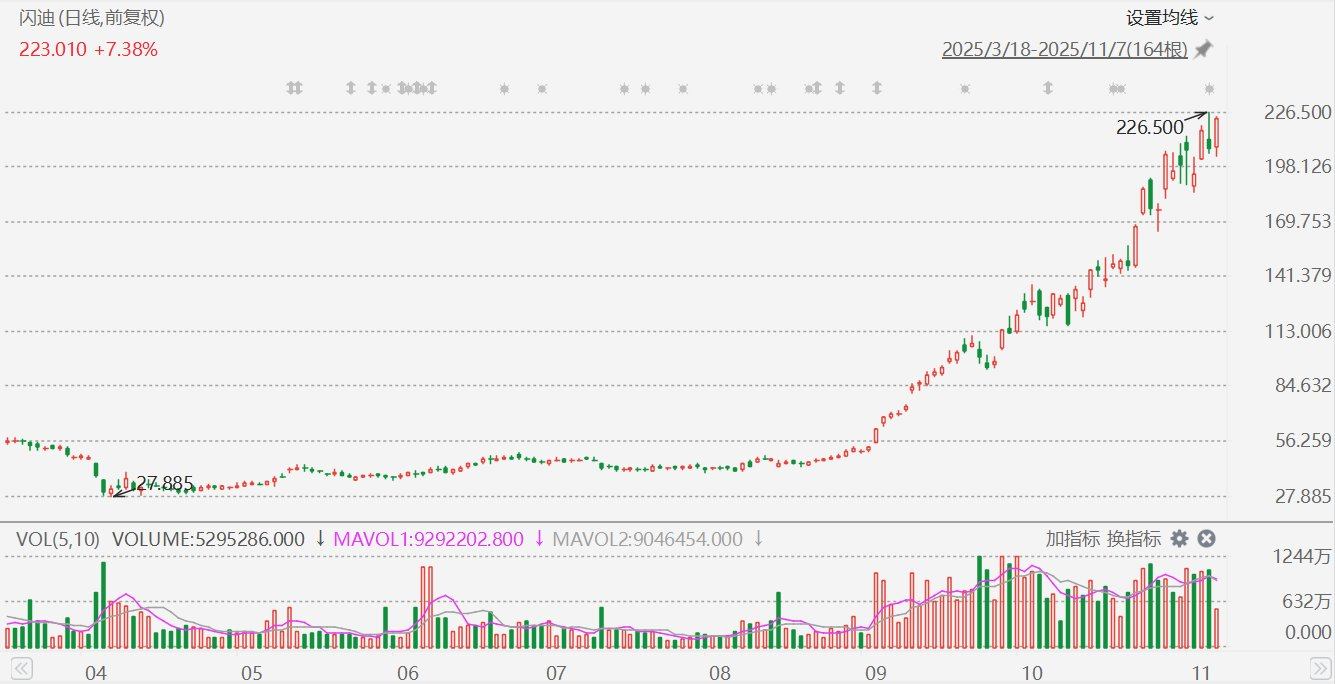 美股存储概念股闪迪(SNDK.US)逆势拉升涨超7%报223美元。消息面上,公司公布截至2025年10月3日季度业绩显示,Non-GAAP下,季度营收23.08亿美元,环比增长21%,同比增长23%;毛利润率29.9%,环比增长3.5个百分点,同比下降9个百分点;经营利润2.45亿美元,环比增长145%,同比减少31%;净利润1.81亿美元,环比大增331%,同比减少31%。该财季,闪迪NAND bit出货量实现高达约15%增长、平均售价呈中个位数百分比增长,推动了营收、毛利率超出预期。