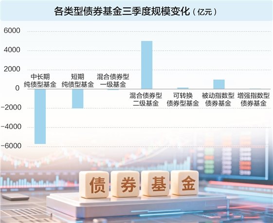 数据变化更能表露出这场变革的脉络。今年三季度,总规模高达10万亿元的债券基金单季度缩水近1700亿元,增长态势明显趋缓。结构分化更为突出,纯债基金规模大幅缩水7700亿元,混合债基规模逆势增长约5000亿元,一减一增之间,凸显出行业格局的巨大变化。