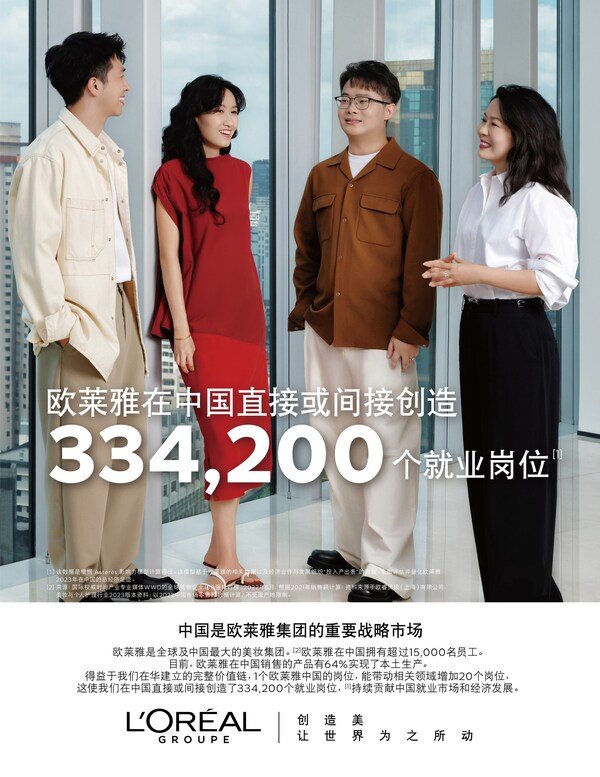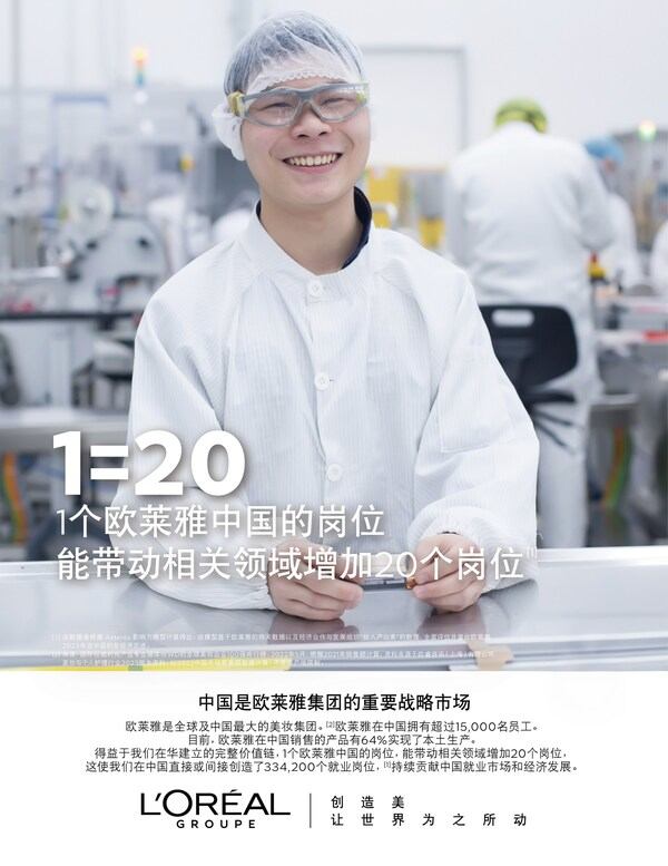根据法国独立经济咨询公司 Asterès 测算,欧莱雅中国直接或间接提供就业岗位超 33 万个,相当于每一个欧莱雅中国的岗位,可以带动其他领域新增20个岗位,8 倍于中国全行业平均就业乘数。