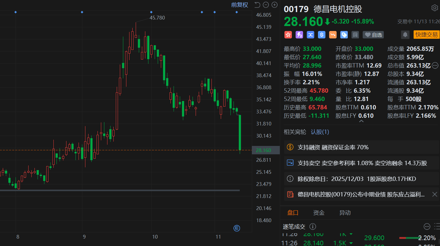 港股异动丨德昌电机绩后重挫超16% 创逾3个月新低