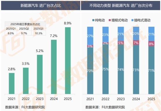 独立售后渠道中新能源汽车进厂台次继续快速增长。2025年第3季度已超10%,全年占比达8.9%,而三种不同动力类型的进厂台次占比结构趋于稳定。