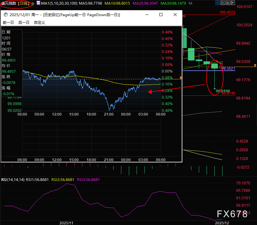 (美元指数日线及日内分时图)