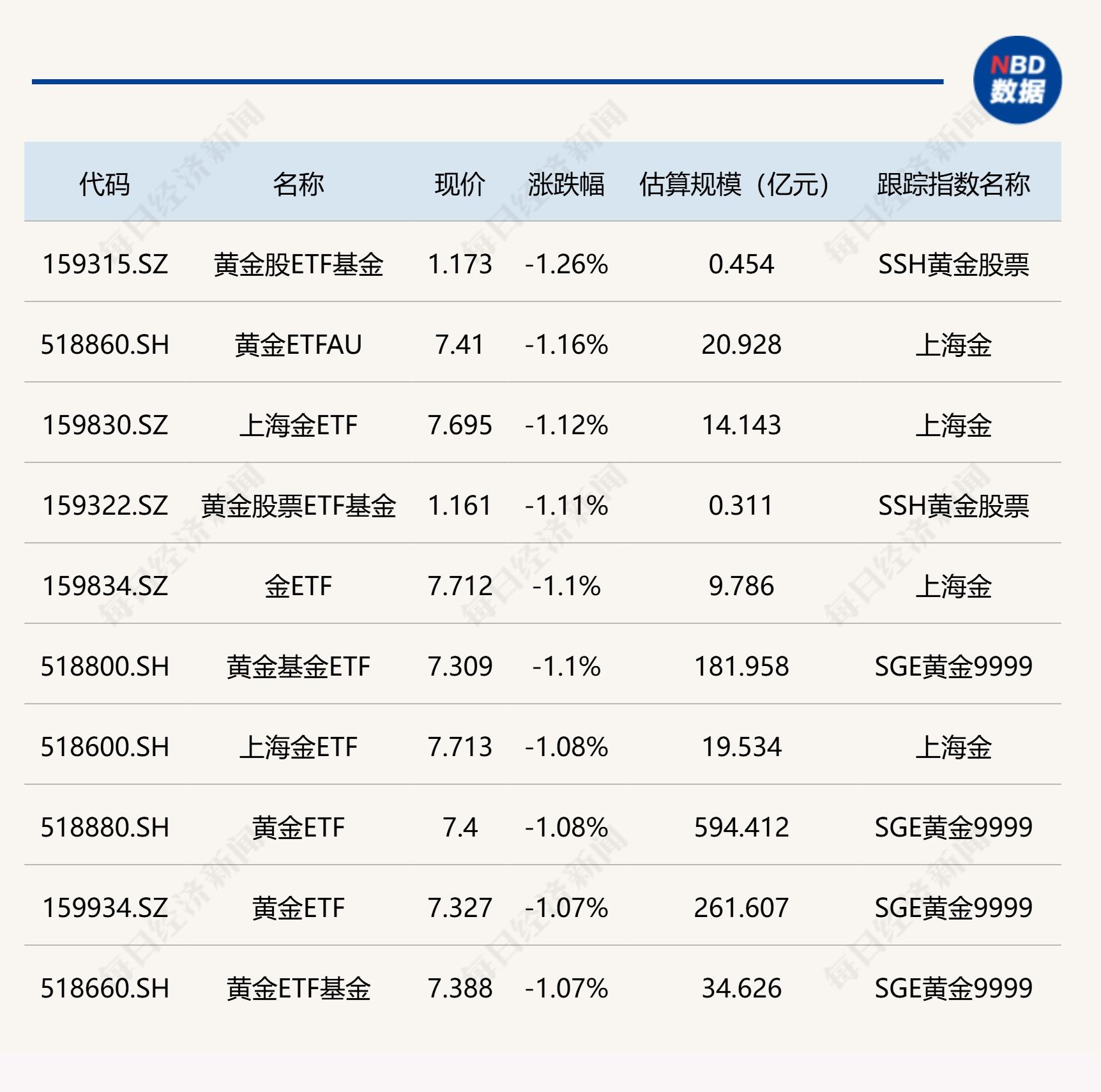 ETF今日收评 | 多只港股创新药相关ETF涨超4%,黄金相关ETF跌逾1%