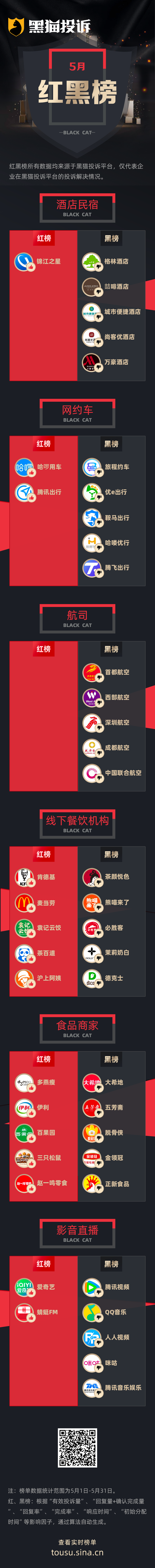 黑猫投诉5月行业红黑榜单