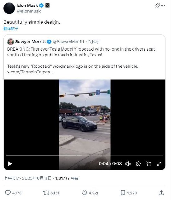 特斯拉Robotaxi上路视频疯传,马斯克连发多贴回应