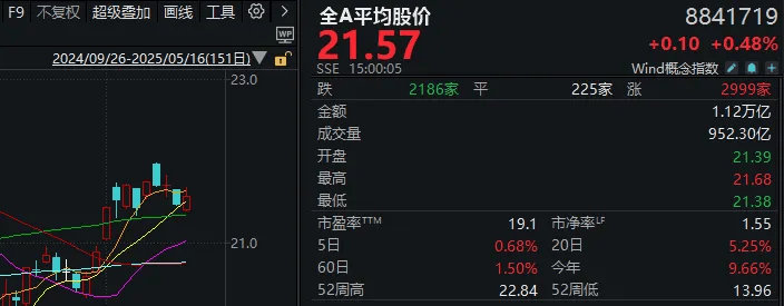 另据Wind数据,全A平均股价的日内低点,实际出现在盘初,这提示市场情绪今天有较明显的回暖。
