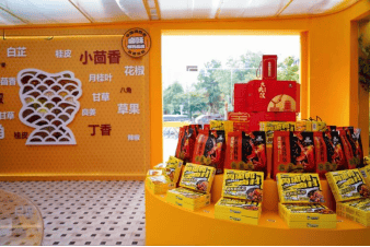 徽章、眼罩、小黄帽、文化衫、双肩包、异形抱枕......发布会现场,周黑鸭快闪店秒变潮流打卡地,错落悬挂的香辛料标本墙如同香料博物馆,让人流连忘返。