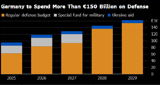 默茨领导的保守党联盟与社会民主党组成的执政联盟正试图引导德国经济在经历两年的萎缩后回归实质性的增长。解决数十年来公共基础设施和军事领域投资不足的问题是计划的部分内容。