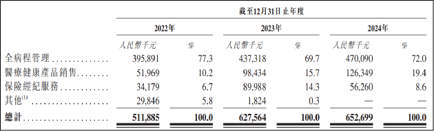 从业务看,公司三大主营业务分别为全病程管理(包括治疗安排与预约、用药管理、康复指导、复诊协调、营养指导、家庭护理服务及远程监护)、医疗健康产品销售、保险经济服务,业务性质与同在闯关资本市场的微医控股、健康160等友商并无太大差别。