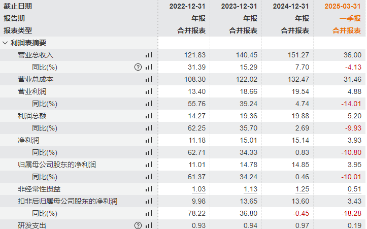 作为速冻食品行业龙头,安井食品近三年营收增速已逐渐放缓。2022年—2024年,公司营收分别达到121.8亿元、140.5亿元、151.3亿元,但增速却从对应的31.39%降至15.29%,再到7.7%。归母净利润增速下滑更为明显,从61.37%、34.24%断崖式滑落至0.46%,已几近停滞。今年一季度,安井业绩进一步承压,营收同比下降4.13%,归母净利下滑10%。