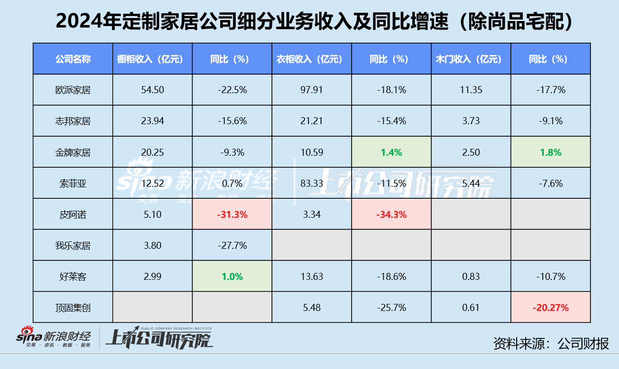 截至4月30日,欧派家居、索菲亚、志邦家居、尚品宅配、金牌家居、好莱客、我乐家居(维权)、顶固集创和皮阿诺9家A股上市的定制家居公司均已发布2024年业绩报告。